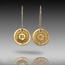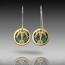 These earrings are hand-crafted in bronze metal clay, hand-painted and filled with resin.  The resin is sanded flush and re-polished.  The kidney earwires are 14K gold filled, and the wire thickness is 21 gauge.  There is a hook in the back, providing a secure closure to prevent loss. Lightweight at 2.5 grams each, makes for comfortable wearing.