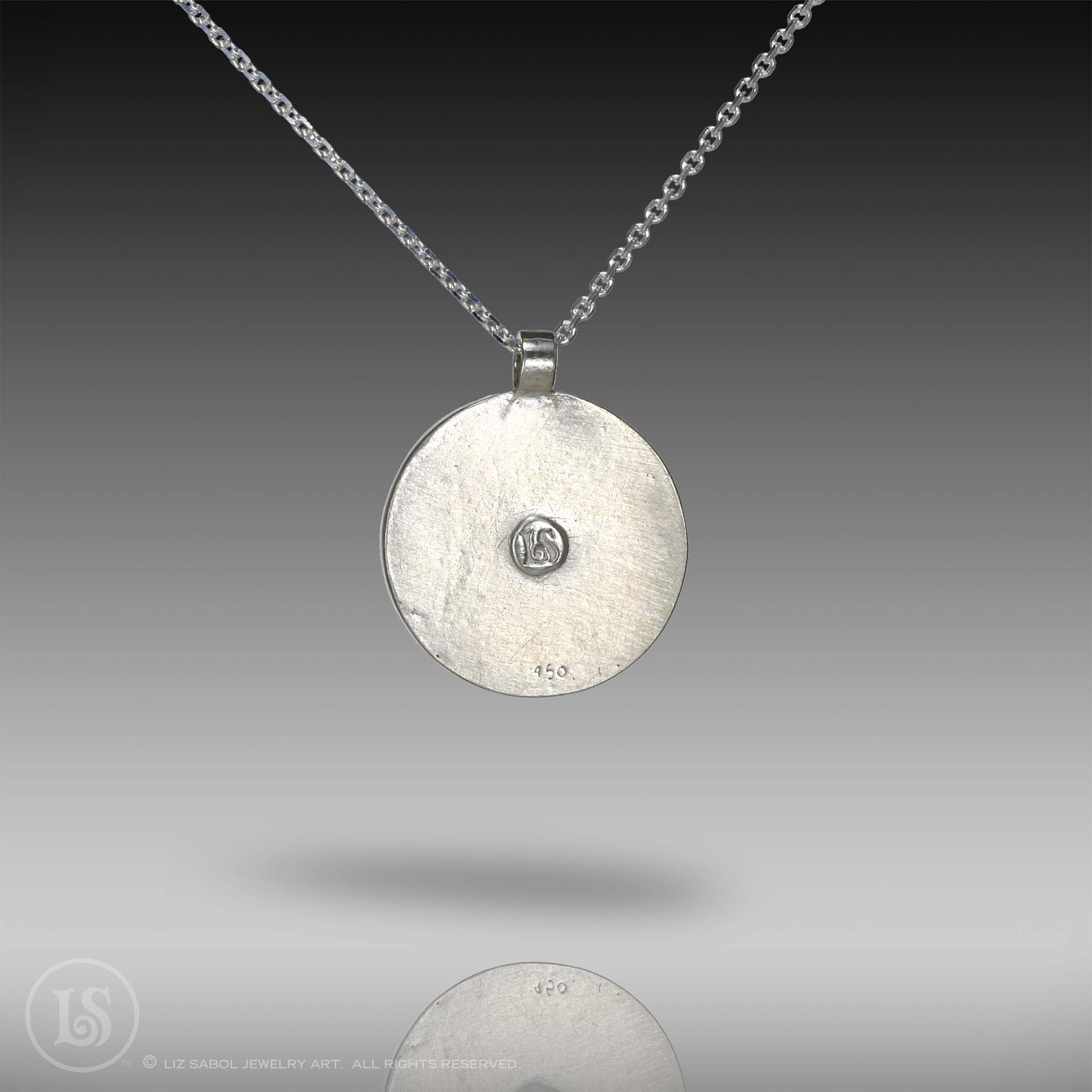 Handmade with sterling metal clay, featuring a texture that I designed, and bright shiny colors. Hand-painted and filled with resin. 18" sterling chain is included.