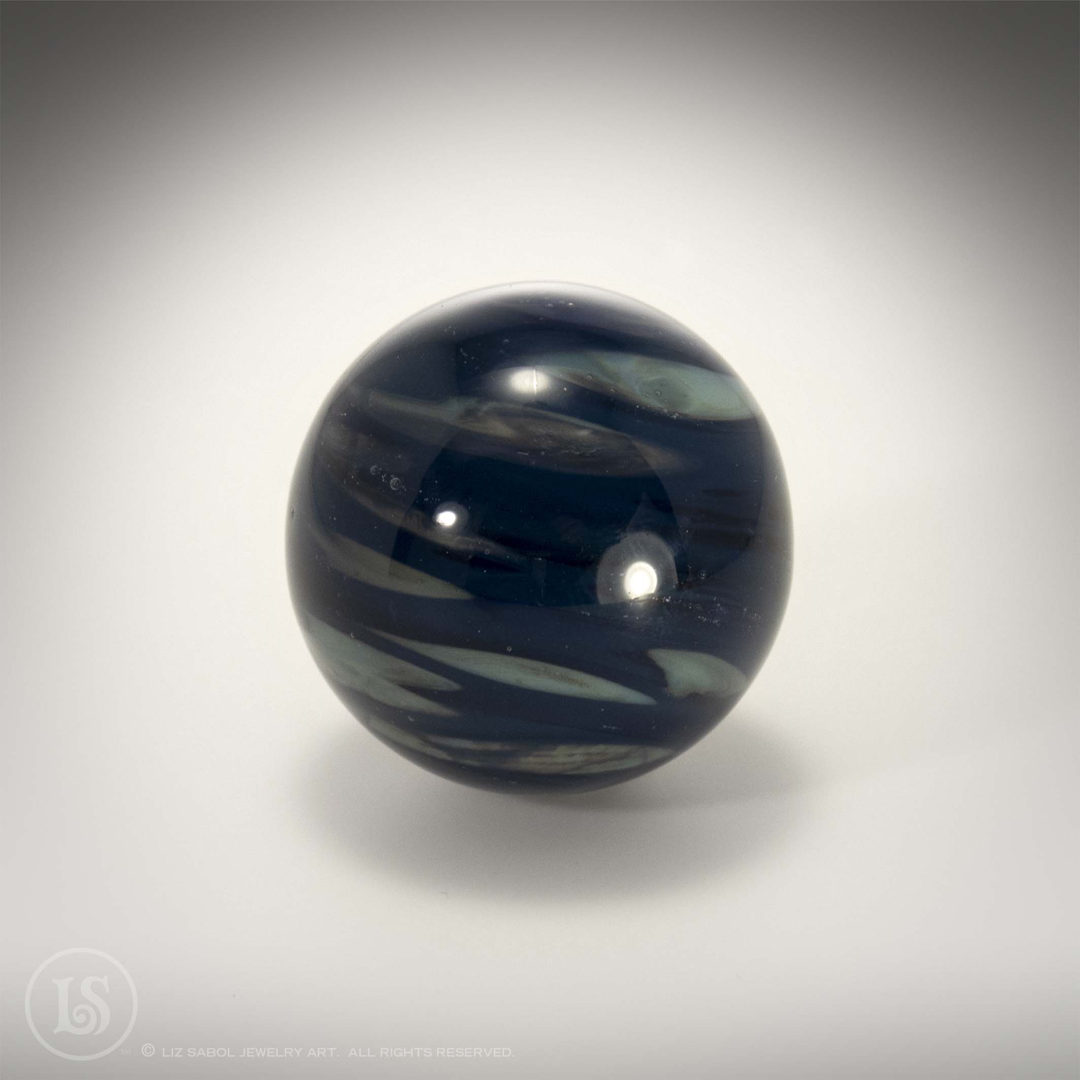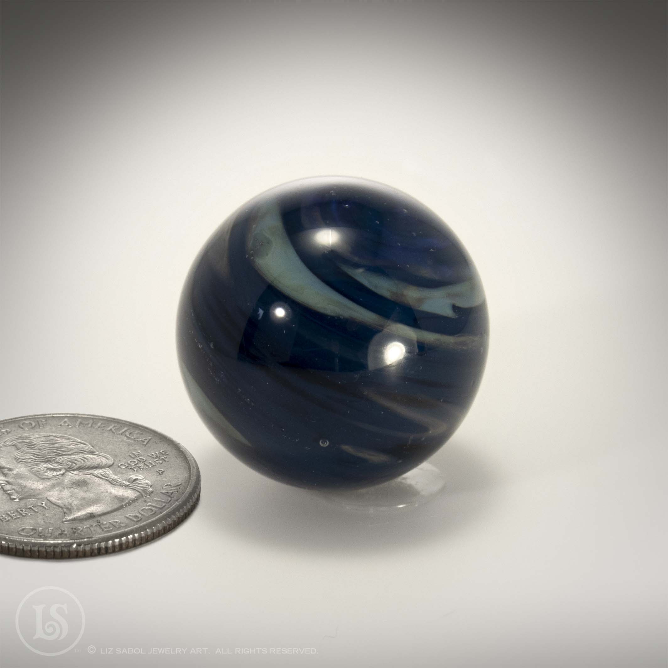 Hand-made one-of-a-kind lampworked glass marble. Signed LS on the bottom with titanium pen. A simple plastic stand is included. Hand-made bronze stands are available for purchase.