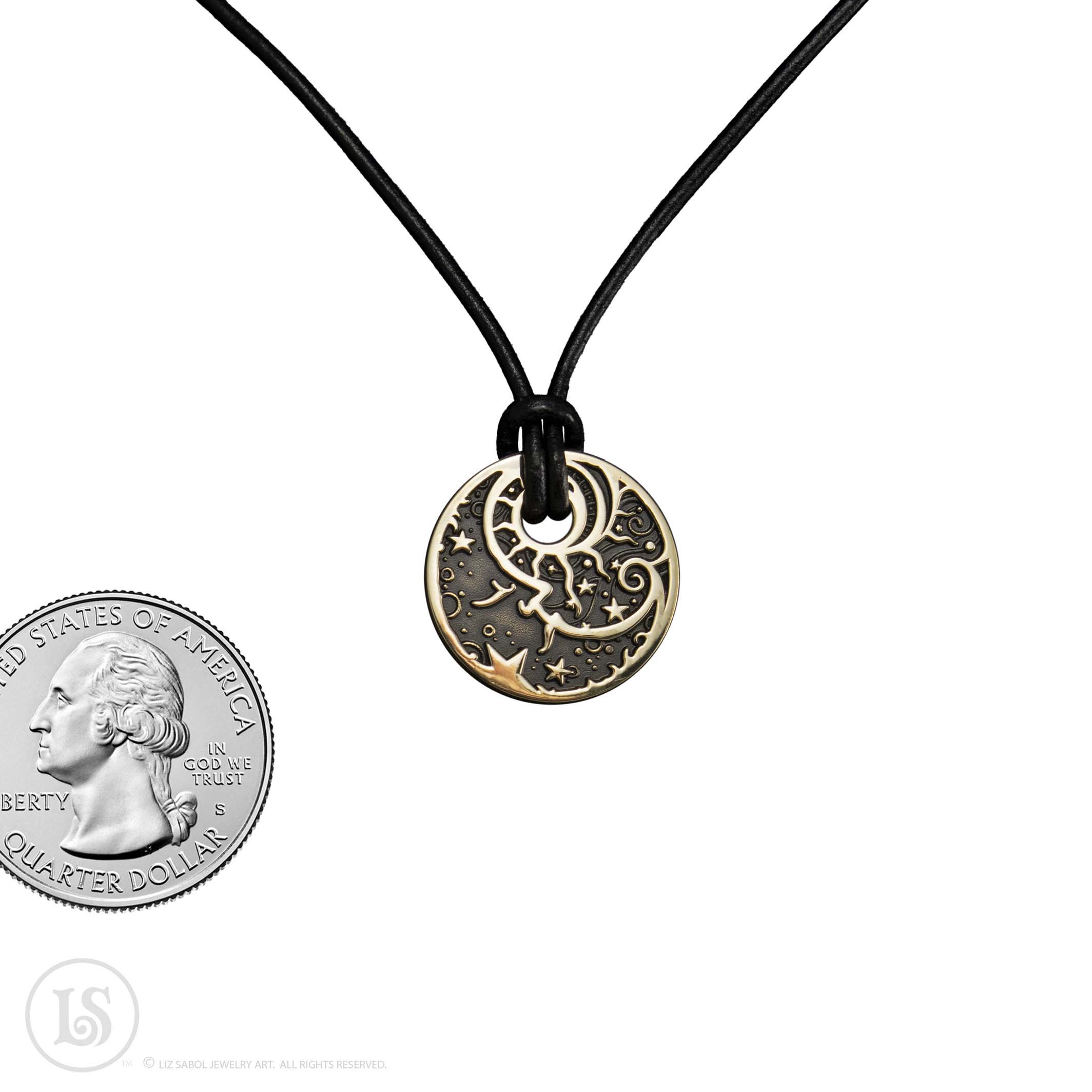 Comes on a 18" leather cord.