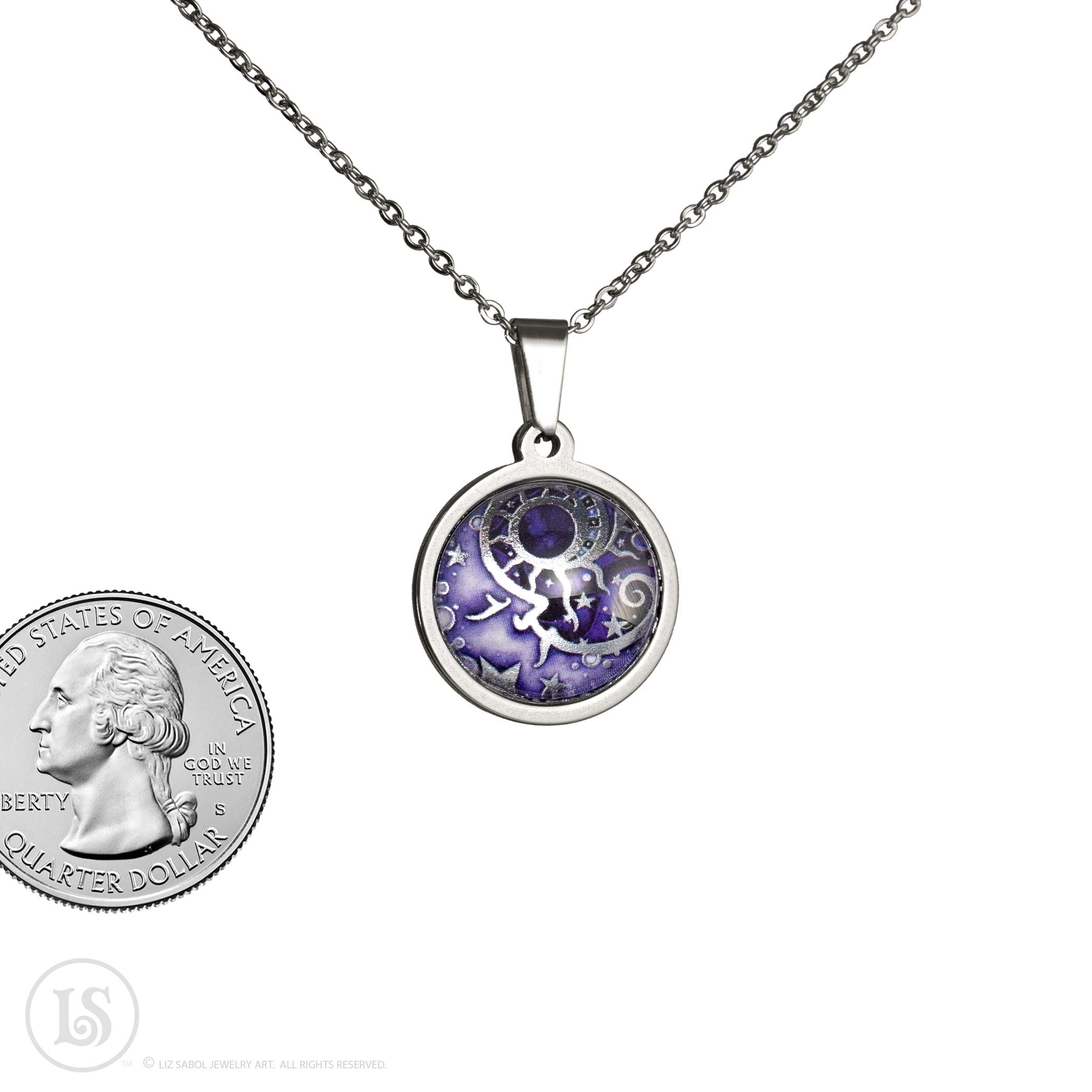 Man in the Moon Purple, Small Pendant, Silver-tone, Glass, Stainless Steel