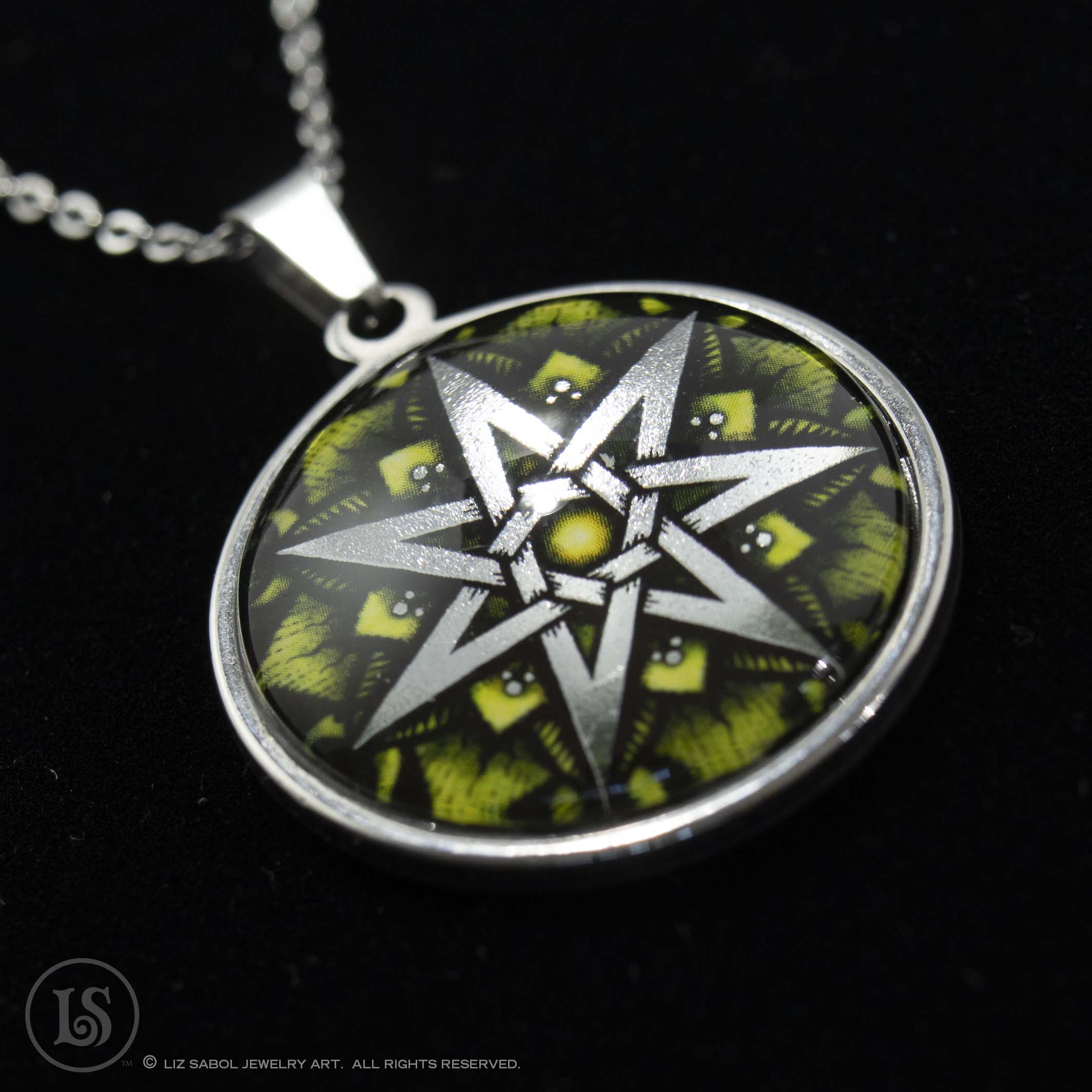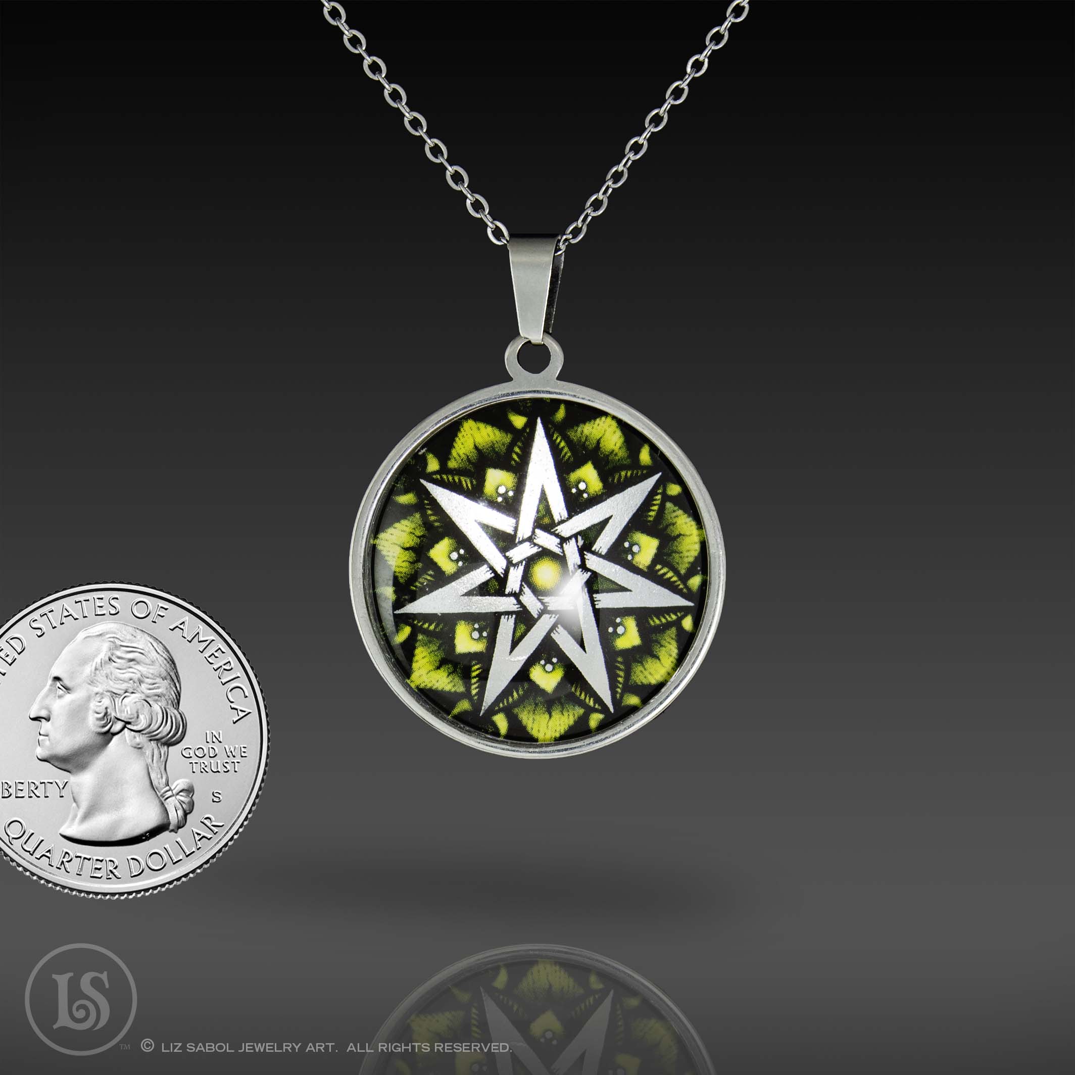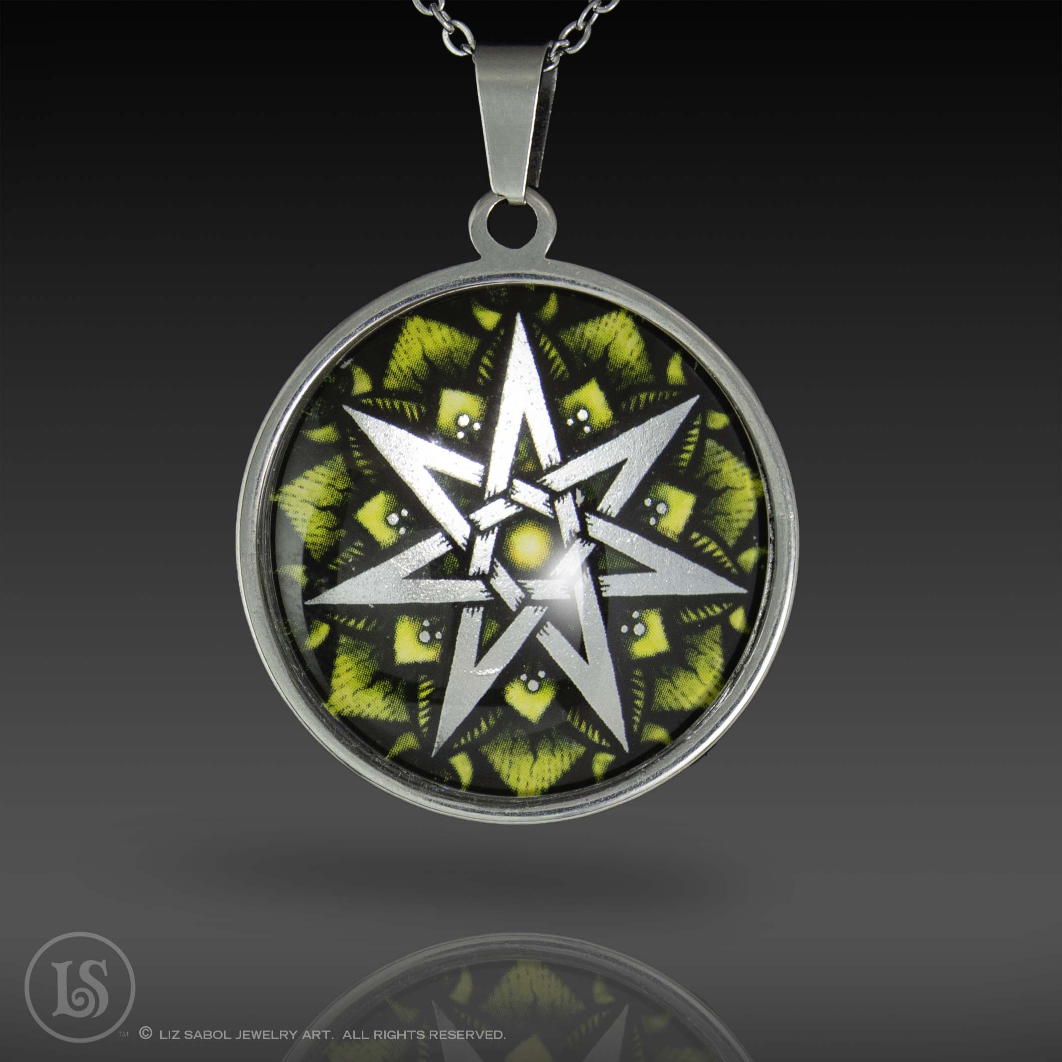 Septagram, WC Green Pendant, Glass, Stainless Steel